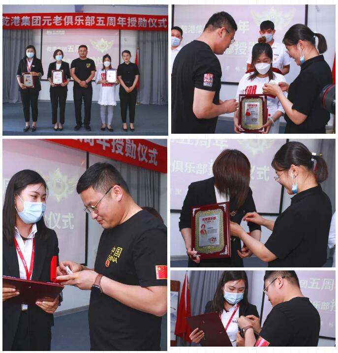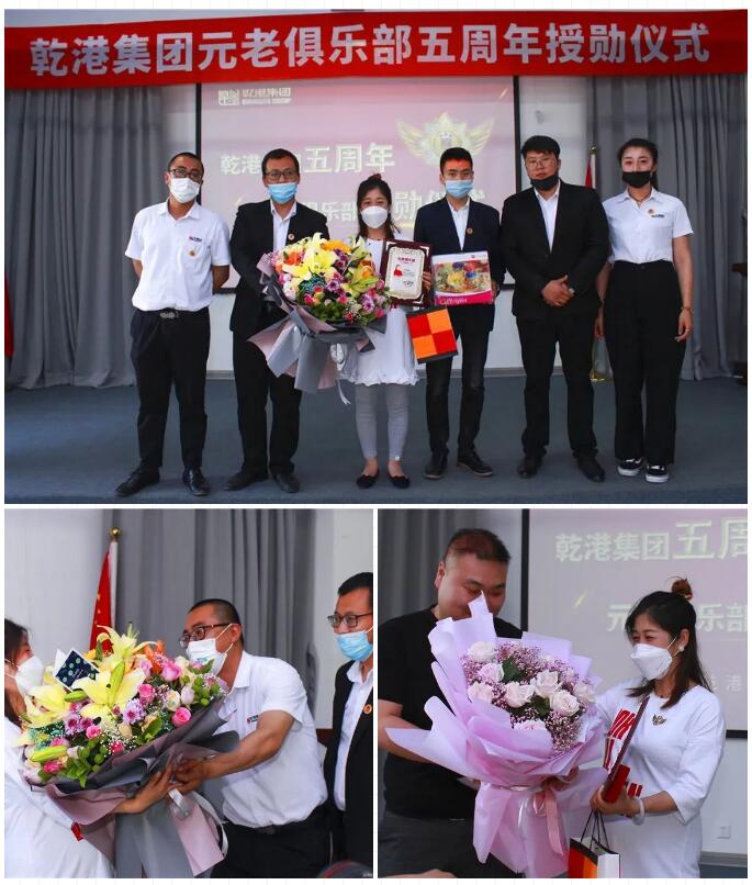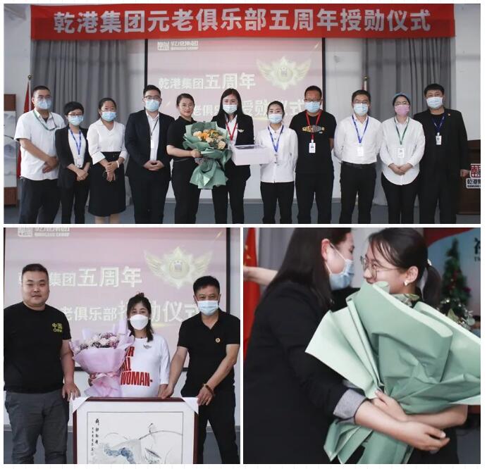 2020年5月28日,乾港集團元老俱樂部五周年授勛儀式隆重召開,乾港集團對3位工齡超過5年以上的老員工授予榮譽勛章,感謝元老們在乾港集團發(fā)展中做出的貢獻。